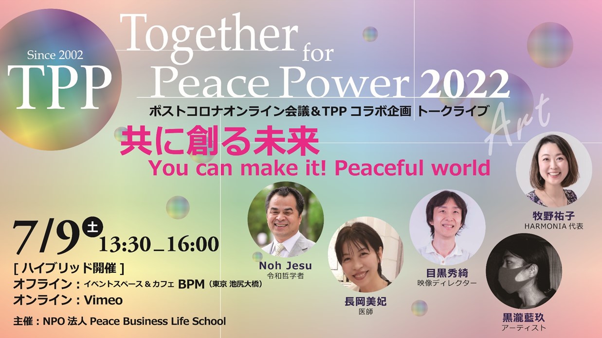 TPP(Together for Peace Power)は「平和」を名詞ではなく動詞としてとらえ、毎日蓄積していく"平和能力"を持つ"Peace Human"が繋がって共に作るPeace Power Movementです。